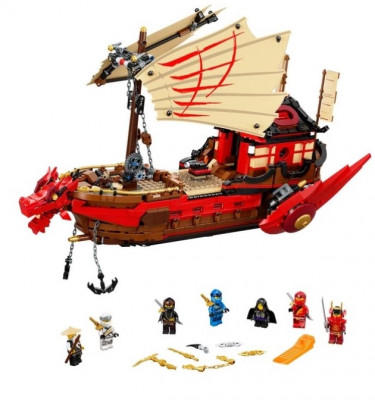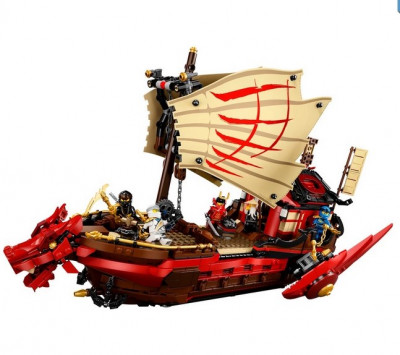 Из всех деталей конструктора собирается устрашающий и впечатляющий своими размерами боевой корабль, который одновременно служит и штаб-квартирой ниндзя. Корабль выполнен в ярко-красной цветовой гамме, украшенный золотыми элементами и большим количеством боевого оружия.