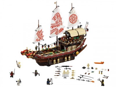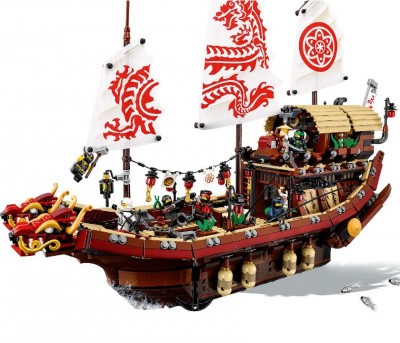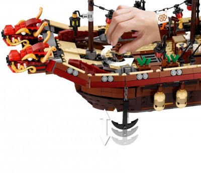 Для путешествий по миру Ниндзяго Мастер Ву и его ученики используют быстроходный корабль из набора. Его корпус выполнен в коричневом цвете с добавлением светло-бежевых элементов. Вдоль бортов видны защитные металлические клёпки и швартовочные буи, а на носу - две красных драконьих головы. Каждый из драконов обладает позолоченными усами, изогнутыми рогами и белыми клыками, торчащими из пасти.