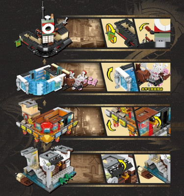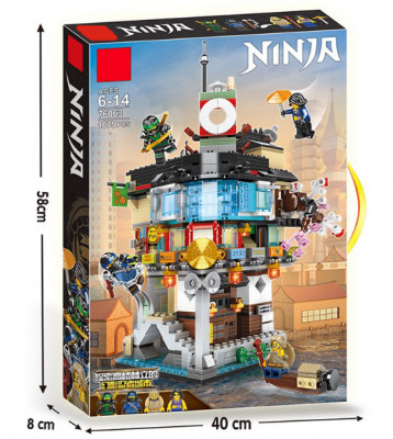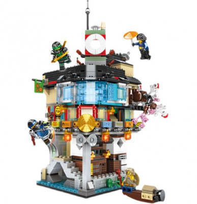 Ниндзяго Сити из набора представляет собой трёхуровневый город, в котором всегда шумно и весело. Горожане спешат по своим повседневным делам. Им нужно успеть посетить множество магазином, заглянуть на рыбный рынок, уделить время своим хобби и поболтать с друзьями за чашечкой ароматного чая. Лишь в выходные дни можно никуда не торопиться, и, удобно устроившись в суши-баре, насладиться панорамным видом на город и его окрестности.