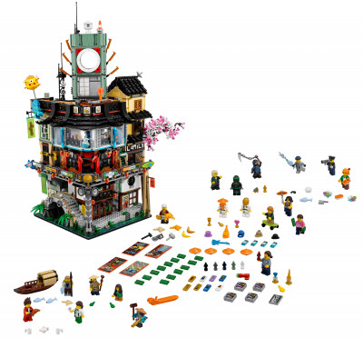 Ниндзяго Сити из набора представляет собой трёхуровневый город, в котором всегда шумно и весело. Горожане спешат по своим повседневным делам. Им нужно успеть посетить множество магазином, заглянуть на рыбный рынок, уделить время своим хобби и поболтать с друзьями за чашечкой ароматного чая. Лишь в выходные дни можно никуда не торопиться, и, удобно устроившись в суши-баре, насладиться панорамным видом на город и его окрестности.