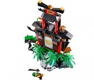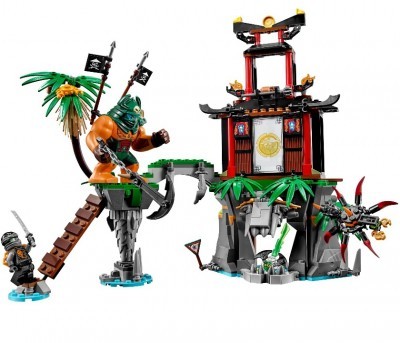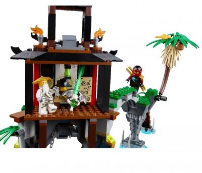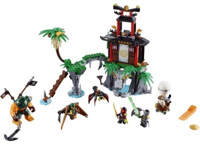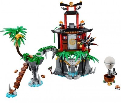 Остров оказался не только очень красивым и таинственным, но и опасным. Из деталей конструктора вы сможете воссоздать его. В правой части расположен двухэтажный храм. На втором этаже установлена катапульта для охраны священного места от непрошеных гостей. В тайном подвале в скале хранятся золотые кристаллы. Забрать их вряд ли получится, ведь сокровища охраняют гигантские смертоносные пауки.
