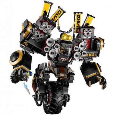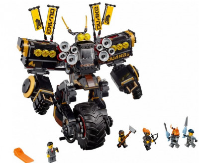 Из деталей набора Вы сможете построить боевую машину Коула. Её корпус выполнен в чёрном цвете с добавлением контрастных позолоченных элементов. Центральное место занимает кабина, прикрытая тонированным стеклом. Подняв его, можно заглянуть внутрь и рассмотреть панель управления, напоминающую диджейский пульт. Над кабиной закреплены два мощных прожектора, соединённых с подставкой для золотых мечей. По бокам видны две акустических системы с динамиками, а наверху - жёлтые флаги с надписью «Землетрясение».
