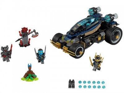 Именно поэтому на миссию решено отправиться на уникальном транспортном средстве. Его вам и предстоит собрать из деталей конструктора. Корпус вездехода выполнен из черно-синих деталей с добавлением ярко-желтых эффектных элементов. Ветровое стекло откидывается и можно посмотреть, как устроена кабина водителя и приборная панель. Самая «соль» машины – это наличие полного привода. То есть при повороте все колеса помогают совершить манёвр.
