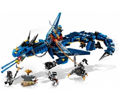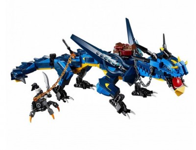 Фигурка дракона собирается из деталей синего цвета и эффектно дополняется ярко-желтыми элементами. На спине Вестника Бури установлено сидение для пассажира. Дракон имеет красивые небольшие крылья, подвижный хвост и выглядит элегантно и красиво. Кроме хвоста, подвижные элементы установлены также на крыльях и лапах. Так что Вестник Бури может двигаться и принимать разные позы.