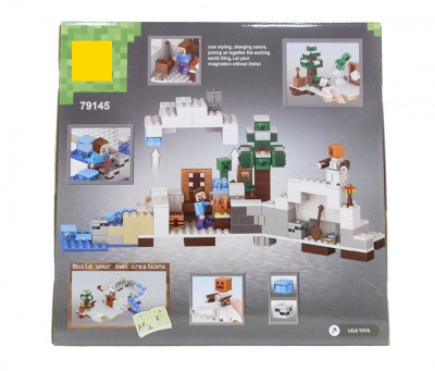 Размер укрытия в собранном виде составляет 8*28*23 см. В комплект входят: блоки, фигурки Стива, снежного охранника, Крипера и многочисленные акcессуары.