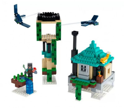 Берите ракету-фейерверк, чтобы на крыльях взлететь в небо и построить парящий дом кузнеца! Соберите башню высотой до неба и летающий остров с садом! Но берегитесь: фантомы нападут на вас, если вы заснете не в своей кровати (вы же собрали кровать, правда?). Надевайте незеритовый шлем и берите трезубец, чтобы с ними сразиться, а потом перестройте набор, чтобы начать новое приключение!