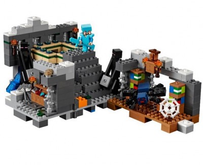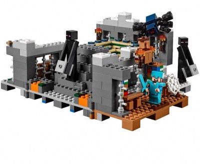 В комплект входят: детали конструктора, 3 фигурки (Стив, Паук, житель Края) и аксессуары.