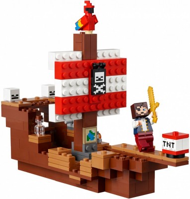 С новым набором вы сможете собрать настоящий пиратский корабль, на котором вы сможете отправиться вместе с Алексом в увлекательное путешествие на остров сокровищ! Разверните пиратский парус, и легкий ветерок поможет быстрее добраться до места, а карта и компас укажут вам верный путь. Не забывайте заряжать пиратские пушки снарядами, чтобы в любой момент быть готовыми дать отпор зомби. Погода для рыбалки отличная, поэтому садитесь в лодку и ловите рыбу в свое удовольствие. Остров можно превратить в стоянку для пиратских кораблей.