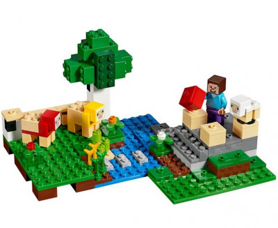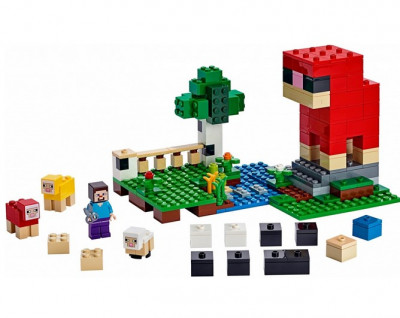 В набор вошла минифигурка Стива, а также фигурки 2 цветных овец и ягнёнка.