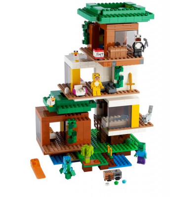 Комплект "Современный домик на дереве" включает в себя 927 элементов и дает возможность собрать игровую площадку более 29 см в высоту, 20 см в ширину и 17 см в глубину. Данный многоэтажный и многофункциональный дом можно собирать как по инструкции, так и переделывать на своё усмотрение. Вам необходимо будет собрать такие комнаты как спальню, библиотеку, ванную, мастерскую, а также выстроить вокруг домика небольшую лужайку, где будут бегать домашние животные.