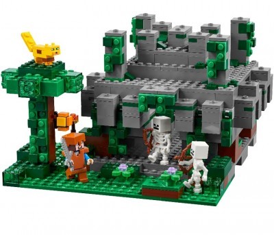 Из деталей конструктора вам предстоит построить эту красивую локацию. Стены храма собираются из серых элементов с добавлением небольших зеленых фрагментов, имитирующих мох. Центральный вход представляет собой прямоугольный проем, густо обвитый лианами. Входить в него нужно с особой осторожностью, ведь здесь могут прятаться скелеты-лучники.