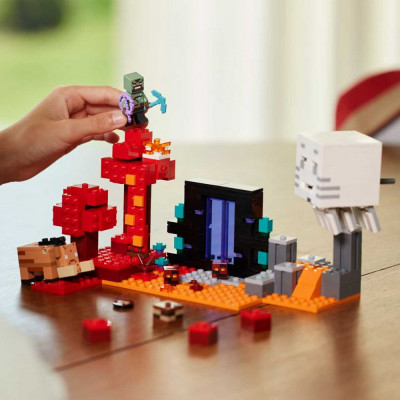 • Minecraft The Nether Portal Ambush — этот приключенческий набор Minecraft для геймеров, мальчиков и девочек в возрасте от 8 лет и старше включает в себя боевые сцены со знаменитыми персонажами Minecraft.