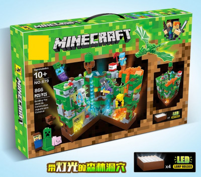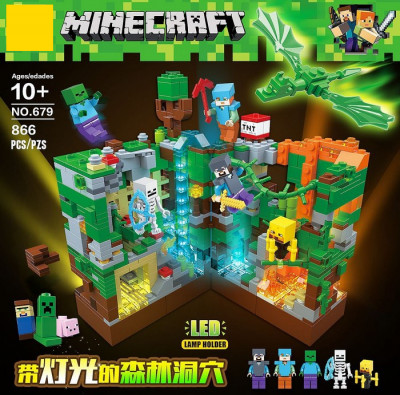 Конструктор Зеленая крепость + LED 866 деталей (Майнкрафт 679)