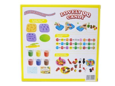 В игровом наборе «Кондитерская» вы найдете три формочки для создания кулинарных барельефов, небольшую скалку, стек, тарелочку и целых 6 баночек пластилина.