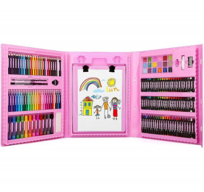 Детский художественый набор - поможет Вашему ребенку не только научиться рисовать, но и позволит развить моторику, абстрактное мышление, воображение. Набор состоит из 176 предметов и включает в себя: доску для рисования, бумагу, разноцветные карандаши и фломастеры, клей, мелки, кисточки и краску.