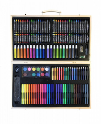 Художественный набор на 220 предметов в самом элегантном и практичном деревянном чемоданчике, подходящем и мальчикам и девочкам. Безупречный подарок или сюрприз для своих любимых творческих талантливых деток! Достоинства творческого набора: