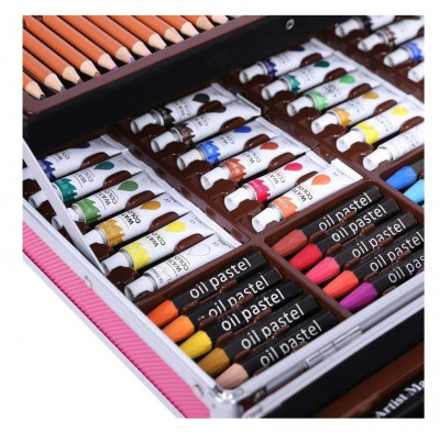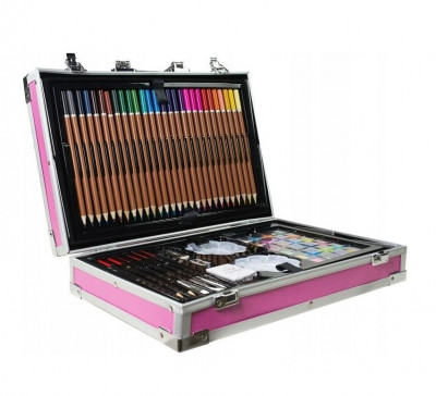 Набор для рисования в металлическом кейсе, 145 предметов розовый