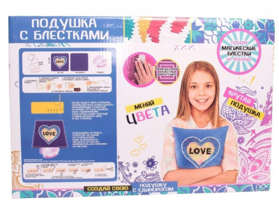 Декоративная подушка с пайетками с принтом LOVE- ,,Сделай сам ” Материал: РЕ пайетки. Набивка: РР хлопок. Размеры: 30*30 см. Стильная декоративная подушка станет прекрасным украшением вашего интерьера. Яркие блестящие пайетки красиво переливаются при дневном и электрическом свете. Помимо декортаивного назначения, подушка - это также отличный антистресс, мягкий и приятный на ощупь.