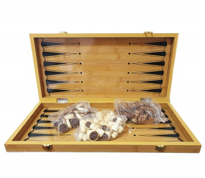 Нарды - яркая цветная модель популярной настольной игры. В набор включено все необходимо - доска из дерева, удобные шашки и два игральных кубика (зары).