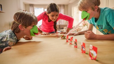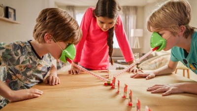Проверить быстроту реакции и ловкость игроков поможет веселая детская игра "Тик Так Тонг". Для этого два участника надевают ярко-зеленые маски хамелеонов с мундштуками и длинными языками, свернутыми в трубочку. Если резко дунуть в трубочку, то язык быстро разворачивается. Совсем как у настоящих рептилий!