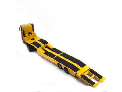Корпус модели полностью повторяет оригинальную машину: яркий жёлтый кузов и большие колёса. Кузов выполняет свою реальную функцию — платформа для заезда автомобилей опускается и поднимается. А ещё машинка издаёт реалистичные звуки работающего двигателя. Длина модели составляет 36 см.