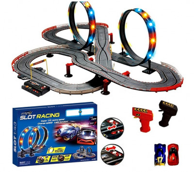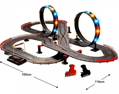 Автотрек станет отличным подарком для Вашего ребенка и подарит ему море положительных эмоций! Габариты трека в собранном состоянии 162 х 113 см. Масштаб 1:43. 2 трековые петли с подсветкой! Режим переключения скоростей для начинающих и опытных игроков. Режим переключения количества игроков (1 или 2). Кольцевая трасса с крутыми поворотами, двумя трековыми петлями с подсветкой и двумя гоночными машинками сможет увлекательно разнообразить досуг детей, в игру можно играть в компании друзей или родителей. В комплекте: детали для сборки трека, 2 машинки, 2 контроллера скорости, адаптер 12 V. Питание: от сети 220 вольт.