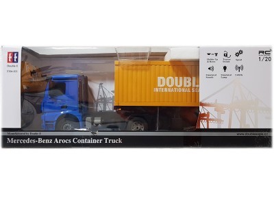 Радиоуправляемый грузовик Mercedes-Benz с прицепом. Прицеп можно пристегивать и отстегивать. Звуковое сопровождение запуска автомобиля, движения, заднего хода и остановки тягача.