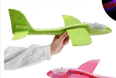 Самолет планер салатовый 46 см. с подсветкой корпуса