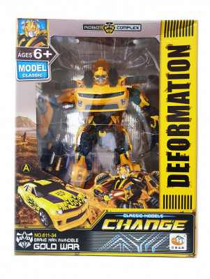 Бамблби, известный персонаж для всех фанатов Трансформеров, да наверное и не только для фанатов. В разных вселенных , он представлен по разному в форме спорт-кара , в форме Фольксваген Жука , в форме Chevrolet Camaro.Но один факт остаётся фактом наш Пчёл всегда жёлтый. Ну конечно имя оправдывает :-). Особенностью этой фигурки есть ее размер , она невероятно большая. Да и за наш сайт не переживайте вы всегда сможете заказать у нас лучших трансформеров по лучшим ценам. Так как игрушкой занималась компания владелец они вышли просто замечательными.