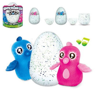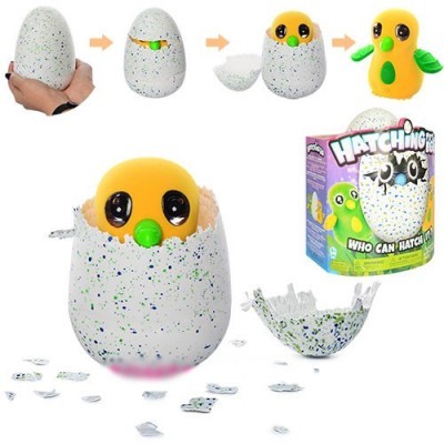 Игрушка находится в яичке и до вылупления нельзя заранее предугадать, кто попадется. Это может быть пингвиненок или дракончик разных цветов. Сам процесс вылупления завораживает. Чтобы активировать этап «высиживания», необходимо извлечь два штифта из нижней части. Вы услышите разные звуки, доносящиеся из-под скорлупы (сопение, кряхтение, биение сердечка и так далее). Чтобы ускорить появление малыша на свет, нужно держать яйцо в руках, гладить его, несильно постукивать. Когда Хэтчималс будет готов, он начнет постукивать изнутри яйца клювом и разобьет скорлупу. Проклюнувшийся Хэтчималс споет песенку «Happy Birthday» .