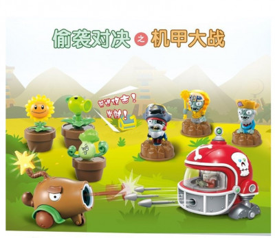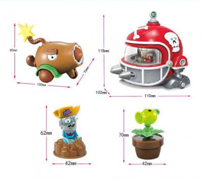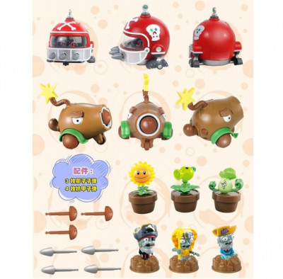 В комплекте: инерционная машинка с зомби (может стрелять специальными пулялками), инерционная машинка кокосовая пушка, 3 фигурки зомби в лунке (вытаскиваются), 3 фигурки растения в лунке